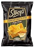 Stacy's Pita Chips, Parmesan Garlic and Herb are all natural with 0g Trans fat and 0 mg cholesterol. Real parmesan cheese, garlic and parsley create a savory and sophisticated snack everyone will enjoy. A great dipping chip, or crumble over soup or salad. How it all got started! We both had a passion for good food and healthy living so we left out careers and bought a food cart. We began making healthy pita roll-up sandwiches and at the end of each day we seasoned and baked the pita bread into delicious healthy chips. Before we knew it, Stacy's Pita Chip Company was born.Features include: -Case of 24, 1.5-ounce bags (total of 36 ounces)-All-natural pita chips flavored by imported parmesan cheese, garlic, and parsley-Baked, not fried; no cholesterol; no trans fat-Great as alternative to breadcrumbs for stuffing or to coat chicken, pork, or fish-Baked in Randolph, MA
