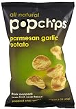 Popchips is the ultimate marriage of rich parmesan cheese and fresh roasted garlic.It is not baked and is all natural and contains 120 calories per serving.It contains no trans fat and is cholesterol freeFeatures include: -Pack of twelve, 3-ounces per bag (total of 36 ounces)-All natural chips-Parmesan and garlic flavored-Never fried or never baked-Ships in Certified Frustration-Free Packaging